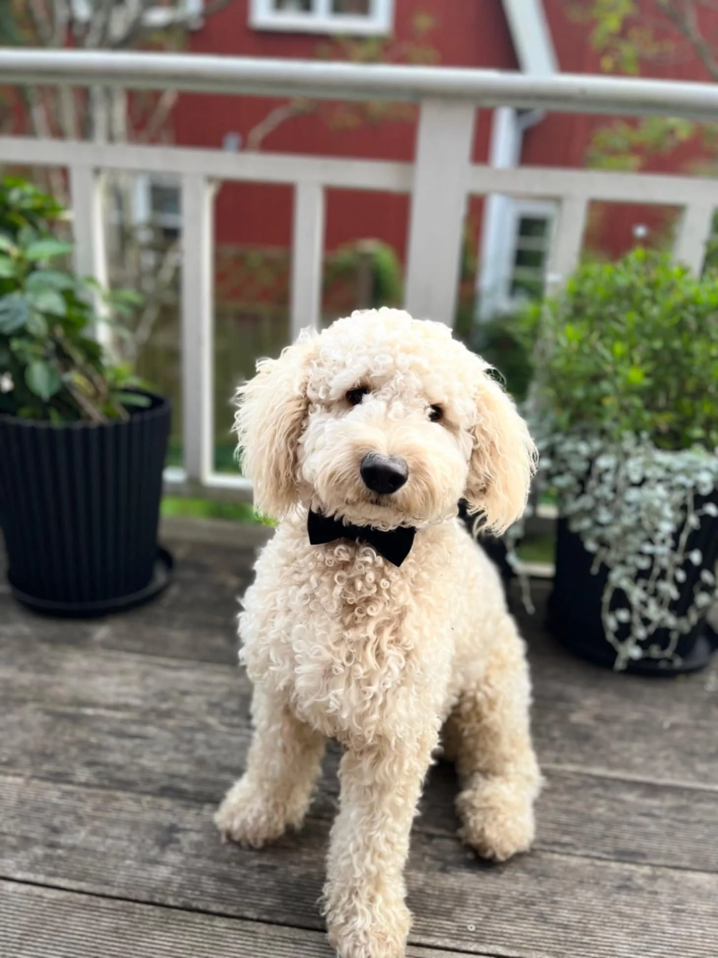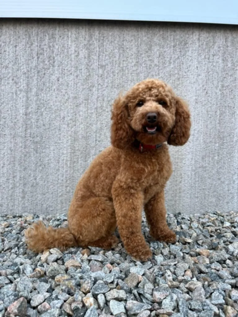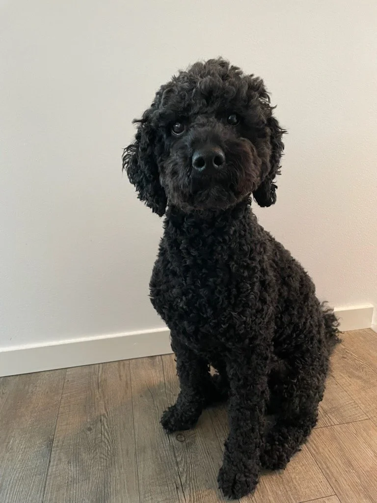 Beppe är en renrasig dvärgpudel som används både inom cockerpoo- och labradoodleavel.