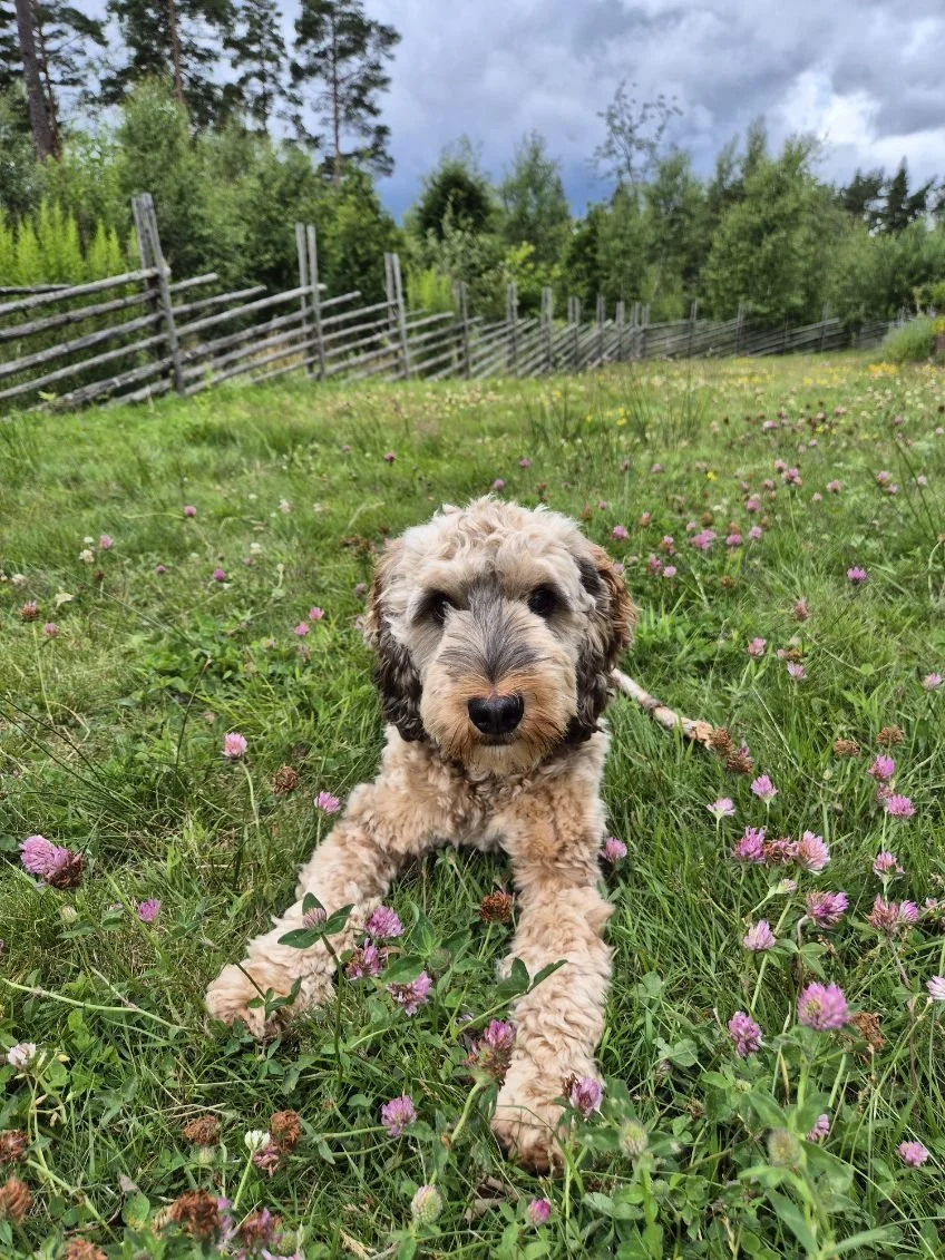 Likaväl som han är lugn, tillgiven och mysig kan han också busa. Han älskar att hämta våra skor , kläderplagg (som hamnat på golvet) och samla ihop till en troféhög på mattan eller i soffan. Ottos päls är precis lika gosig som den ser ut. Vill ni ha en gosig och tillgiven hund som passar alla så är cockerpoo hunden för er”Nathalie