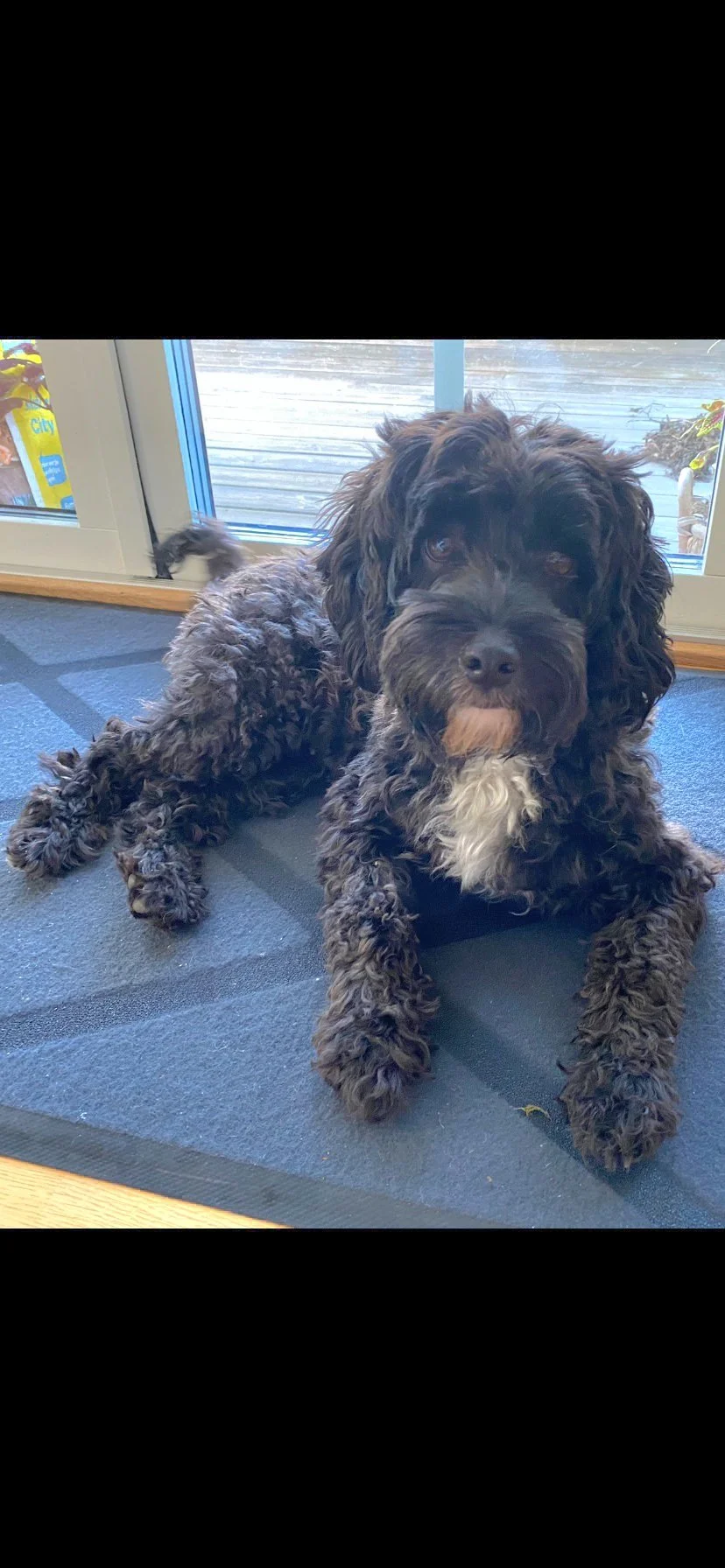 Såhär säger Fridas fodervärd Eva om Frida: “Frida är en go cockerpoo som alltid vill vara nära familjen. Vi har en till hund, en labradoodle från Ryaåsen, som Frida kommer väldigt bra överens med. Frida är jätteduktig på att vara lös och går även fint i koppel. Hon är jättefin tillsammans med våra barnbarn. Vi älskar våran Frida.”